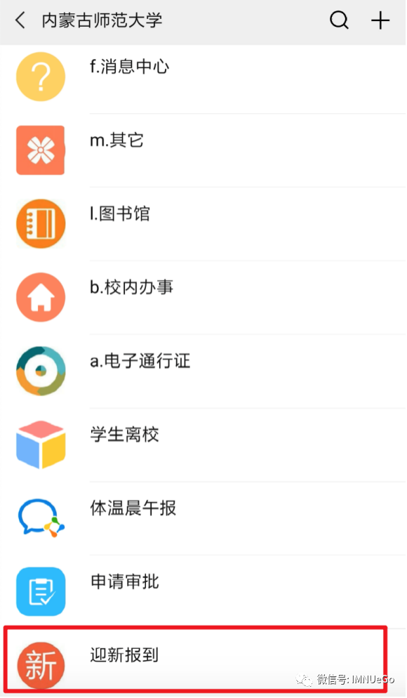 学生绑定yl23455永利企业微信之后,访问迎新报到应用。