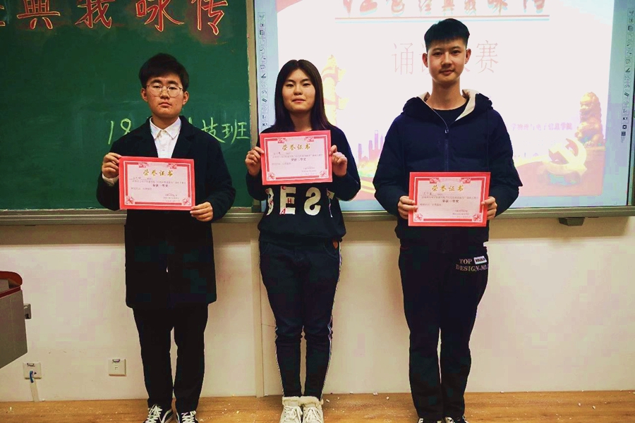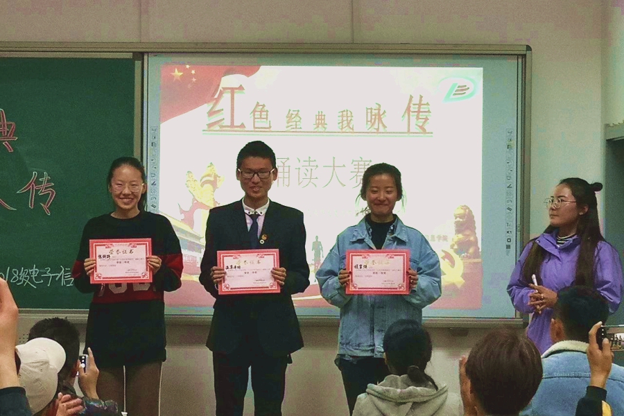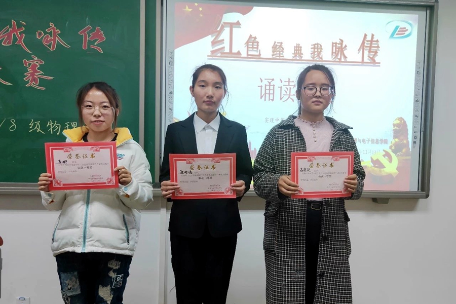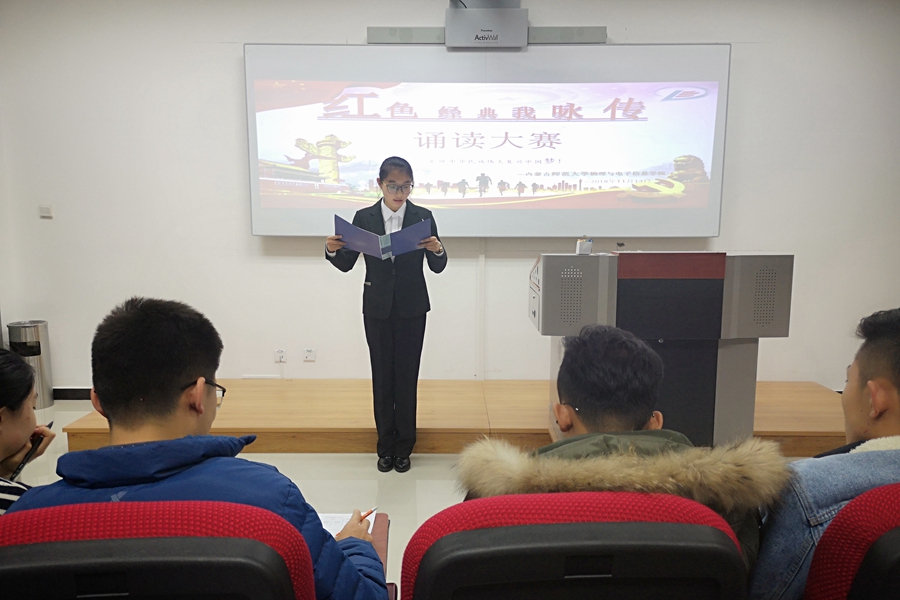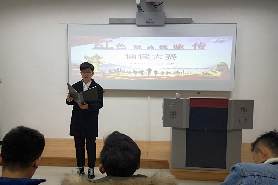 为带领同学们学习革命精神,弘扬红色文化,2018年11月13日晚,我院17、18级各团支部在理工楼举办了以“红色经典我咏传”为主题的诵读比赛。我院17级物理学汉班班主任张天臣、18级物理学汉班班主任其木格、辅导员宋鑫伟受邀出席并担任评委。