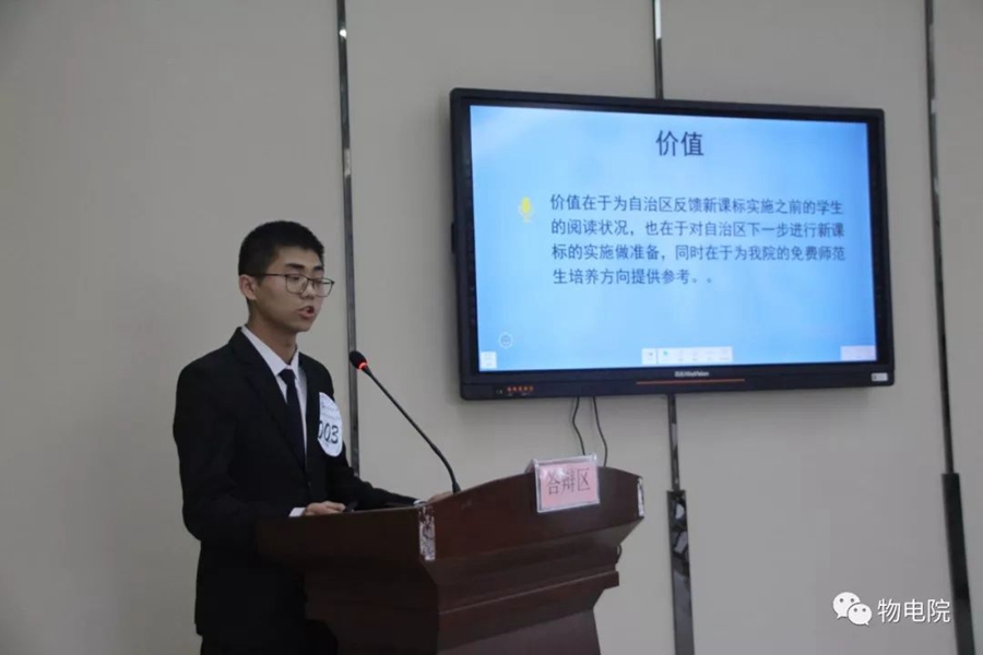 5月30日下午三时,决赛答辩会正式开始。自然科学类论文,科技发明制作类作品以及哲学社会科学类社会调查报告和学术论文三类比赛同时进行。科学技术史研究院副教授董杰、yl23455永利集团教授田晓、生命科学与技术学院教授弓剑、数学科学学院副教授萨贺雅、化学与环境科学学院副教授阿古拉、计算机科学技术学院副教授孟繁军、科技处成果管理科科长苏玉明、科技处理工项目管理科科长邬友、教务处教学科科长侯欣舒担任本次竞争赛评委。 在自然科技类学术论文、哲学社会科学学术论文与哲学社会科学类社会调查报告分赛场中,选手们以缜密的逻辑和简洁的的语言在短暂的五分钟内将论文报告、调查结果进行了充分展示,他们精彩的阐述与科学严谨的思路赢得了阵阵掌声和评委老师的一致好评。根据选手们的选题角度、创新程度、思维深度、研究过程以及已获得的学术成果等方面,选手们与评委们进行了精彩的答辩,使听众们收获了一场丰盛的知识盛宴。