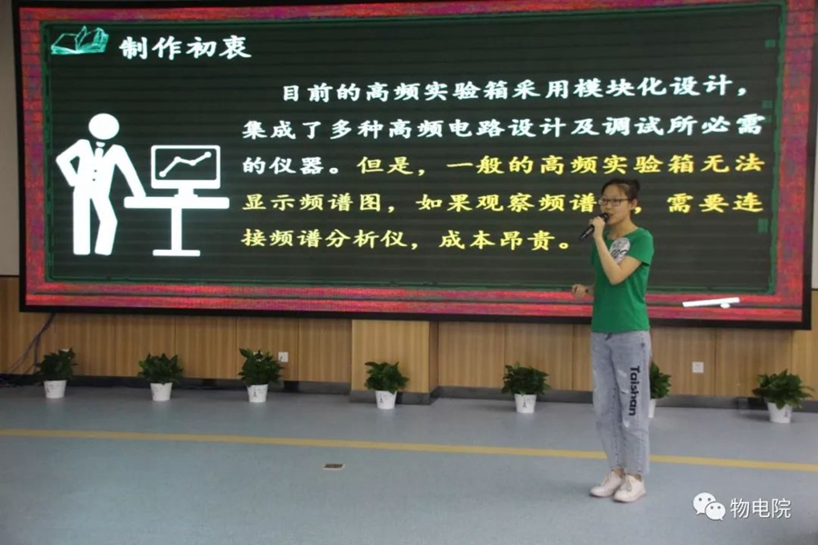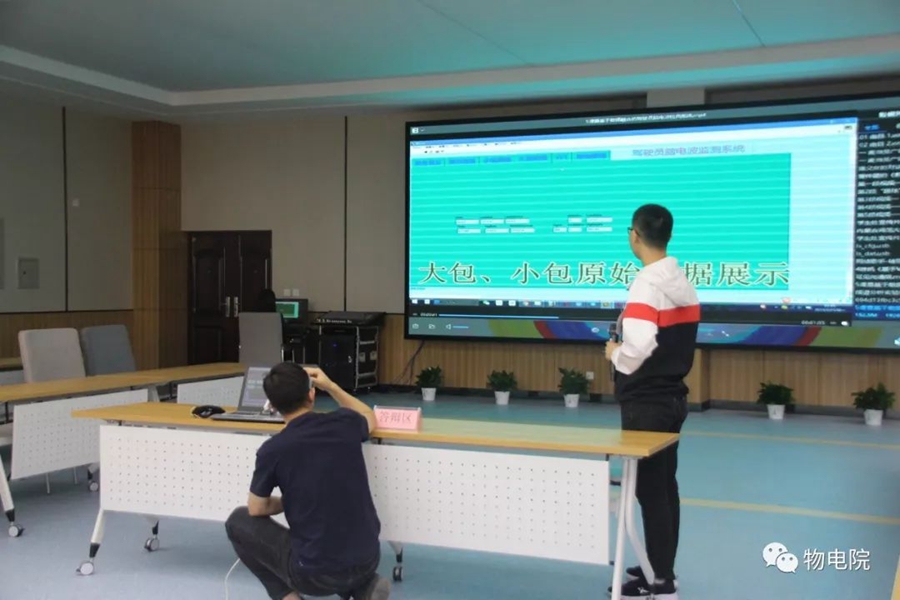 镜头转到科技发明制作类的比赛现场,这里的科技发明作品形形色色,令人大开眼界。计算机科学技术学院的同学们带来了火车票订票机器人、酒精发电机、VR自行车、牧场小型机器人饲喂设计开发等益于日常生活的发明制作;yl23455永利集团带来了基于VCO设计的无人机干扰器、驾驶员脑电波监测系统、频谱分析实验箱、可见光通信系统、基于PVDF压电薄膜传感器智能穿戴设备等益于教学科研的“高科技”作品......一件件新奇的科技作品,配上选手们详细的的介绍,引来一阵阵喝彩和掌声。评委老师们也对一些作品进行了试用,对同学们广阔的思维与智慧表示赞扬与肯定。