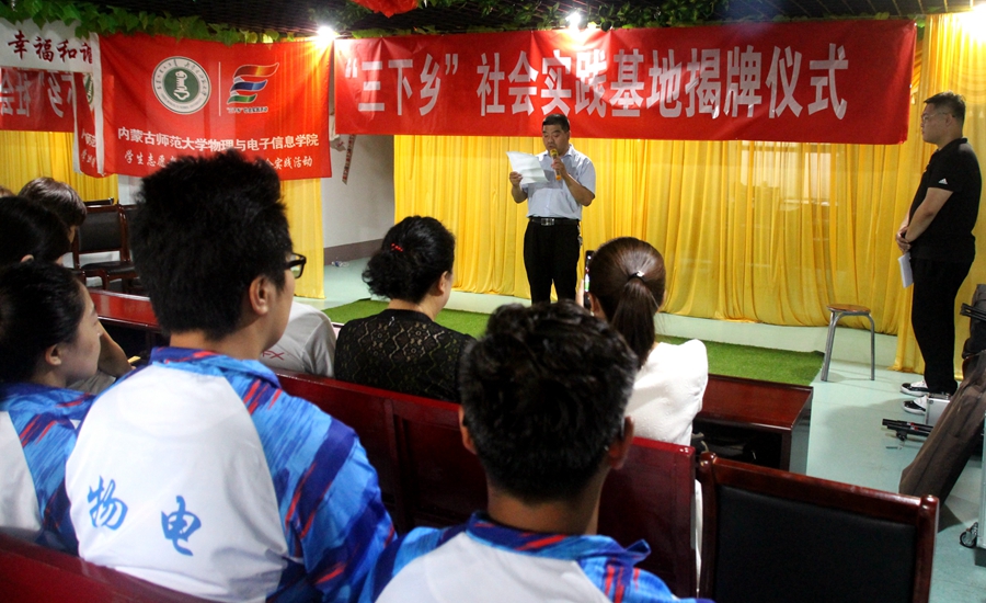 2018年7月16日,我院于清水河县城关镇永安社区居委会举办建立社会实践基地揭牌仪式,城关镇副镇长杜志强同志,yl23455永利集团团总支书记萨其尔老师,志愿服务队指导教师克伦老师,学工办芦嘉琛、苏日、宋鑫伟老师与物电院志愿服务队队员、居委会工作人员参加仪式,仪式由城关镇永安社区居民委员会党委书记闫鹏旭同志主持。