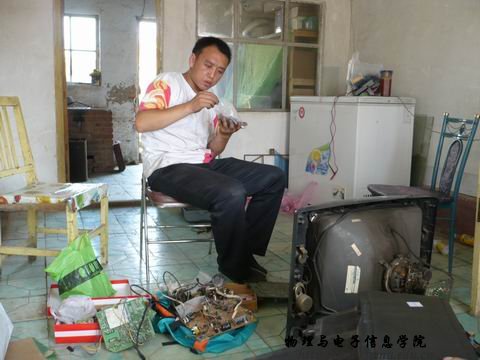 牧民得知我们为他们义务维修家电后特别高兴,一位叫毕力德的牧民说:“以前家电出了故障之后需要打车到西乌旗维修,非常不方便,加上维修费用较高,我们就把出故障的家电放置一边另买新品,可以说家家户户都有旧家电。”