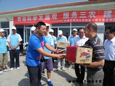 7月20日上午,我校党委陈中永书记在党办主任李向东、工会主席肖有明、团委书记斯钦、赛罕校区后勤集团总经理特格希、我院党总支书记阿梅、院长张伟、党总支副书记兼副院长辛智俊等一行陪同下赴乌兰察布市集宁区马莲渠乡慰问了我院暑期“三下乡”社会实践活动志愿者,并送来了慰问金和慰问品。