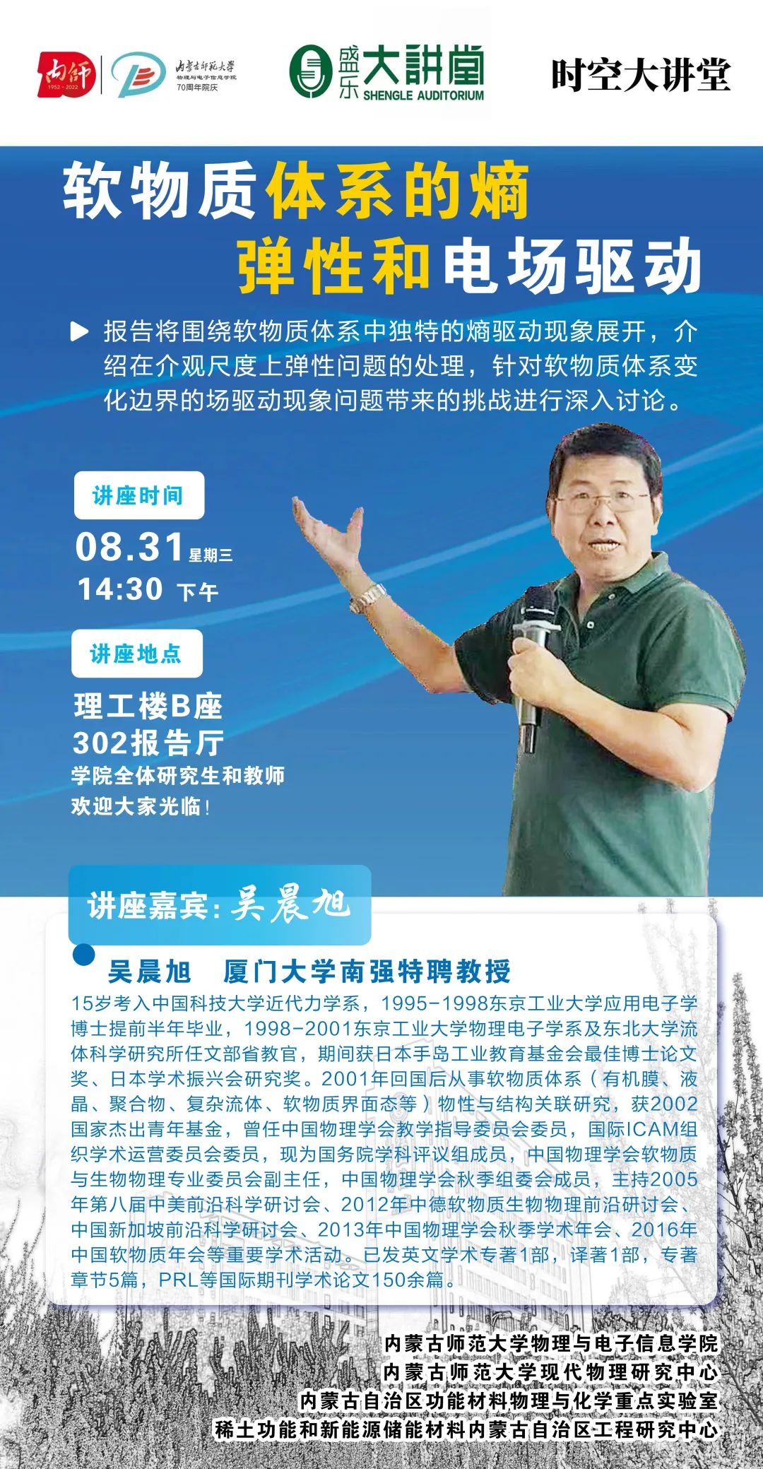 【预告|时空大讲堂】学术报告(一)吴晨旭:软物质体系的熵弹性和电场驱动